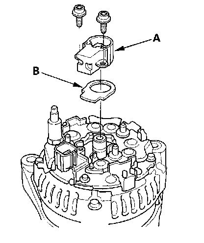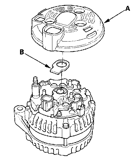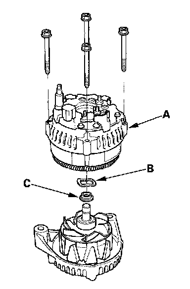 18. Reassemble the alternator in reverse order of disassembly, and note these items.
