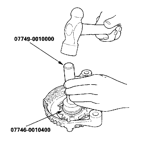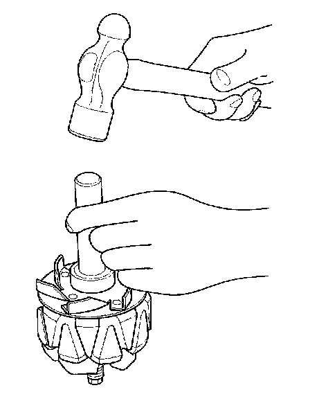 11. With a hammer and commercially available tools shown, install a new rear bearing in the rotor shaft.