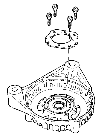 7. Remove the four bolts, then remove the rear housing assembly (A), washer (B), and rear bearing cover (C).