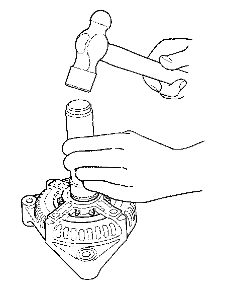 14. With a hammer and special tools, install a new front bearing in the drive end housing.