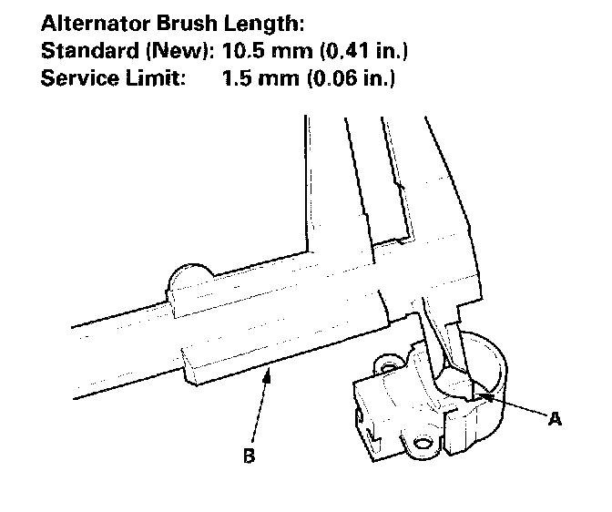 - If either brush is shorter than the service limit, replace the brush holder assembly.