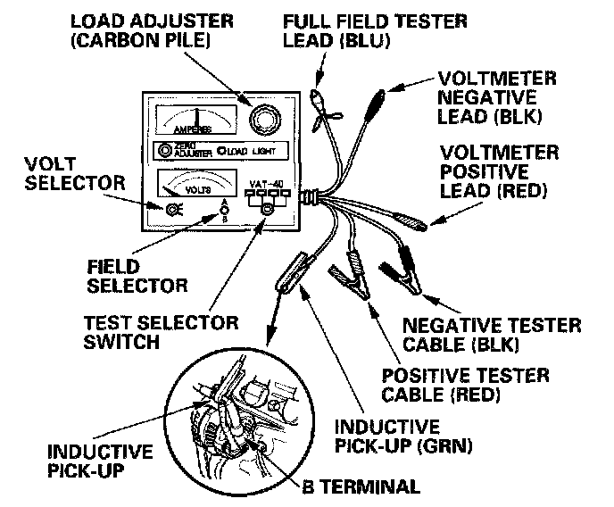 10. Apply a load with the VAT-40 until the battery voltage drops to between 12 - 13.5 V.