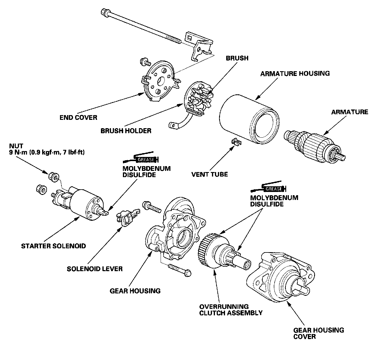 2. Disassemble the starter as shown at the beginning of this procedure.
