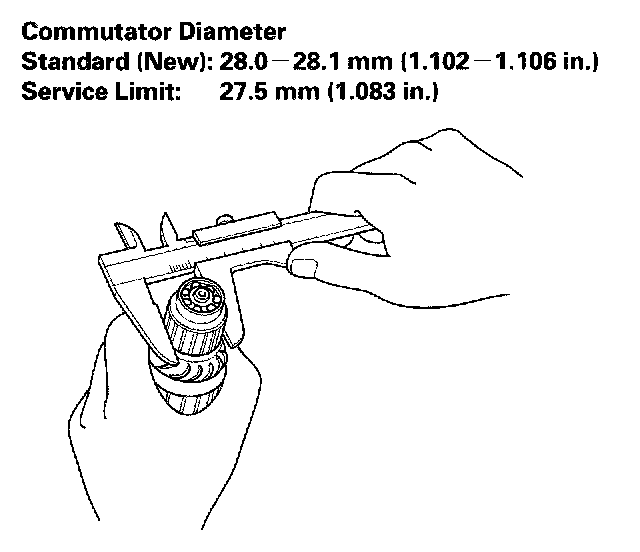 5. Check the commutator diameter. If the diameter is below the service limit, replace the armature.