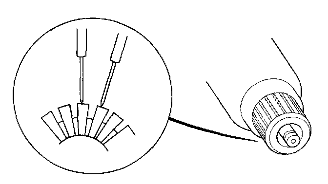 8. Check for continuity between the segments of the commutator. If an open circuit exists between any segments, replace the armature.