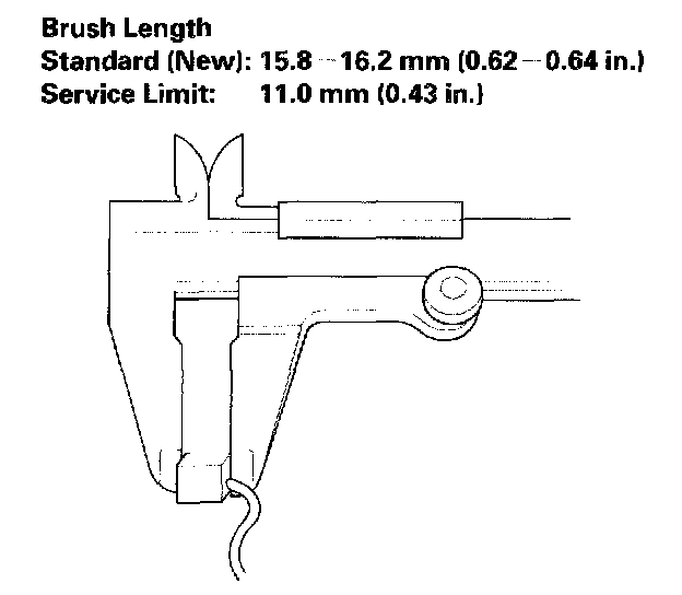 11. Measure the brush length. If it is not within the service limit, replace the brush holder assembly.
