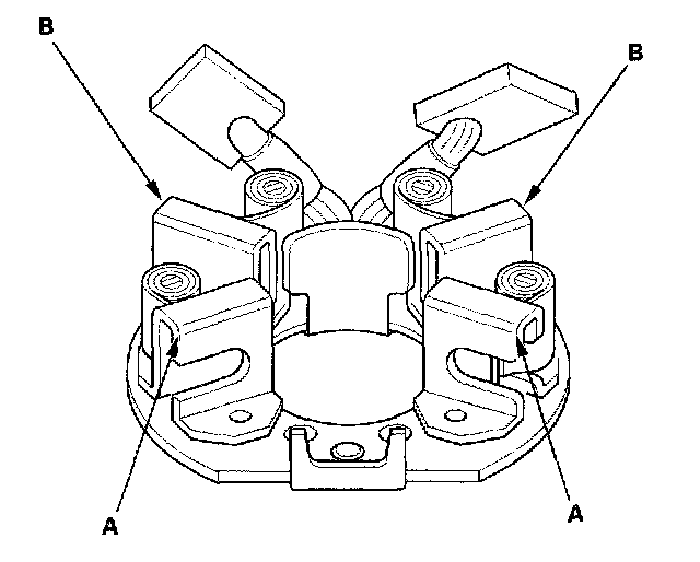 12. Check that there is no continuity between the (+) brush holder (A) and (-) brush holder (B). If there is continuity, replace the brush holder assembly.