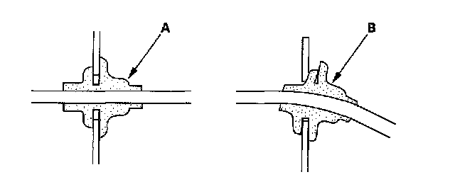 - Seat grommets in their grooves properly (A). Do not leave grommets distorted (B).