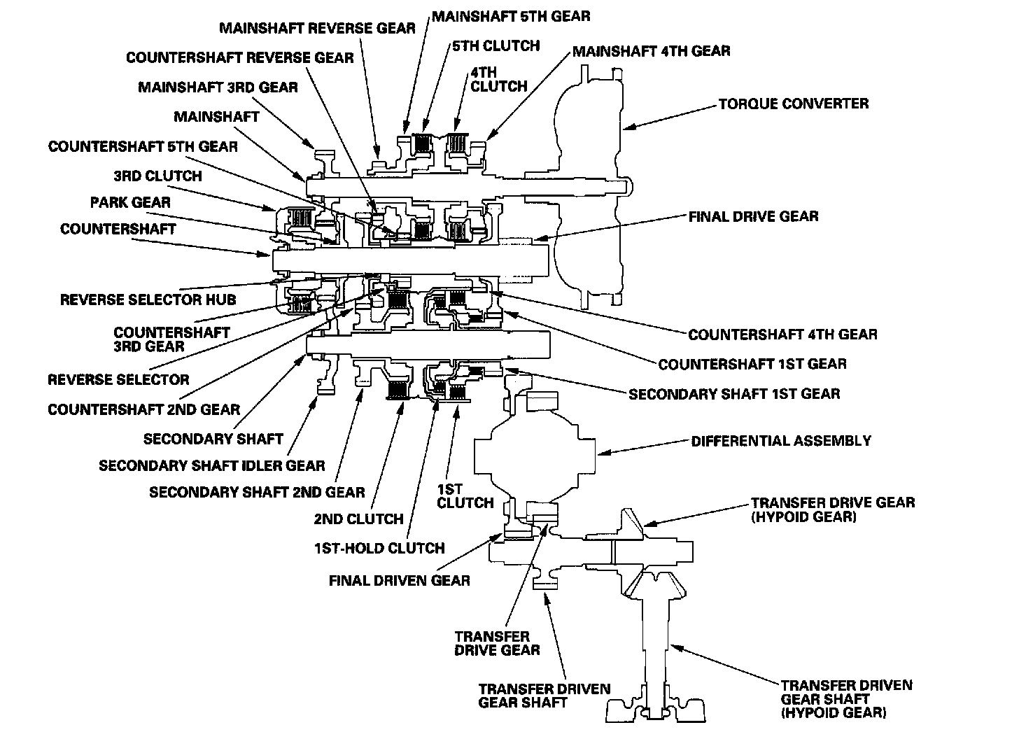 - The transfer driven gear shaft drives the transfer drive gear (hypoid gear) and the transfer driven gear shaft (hypoid gear).