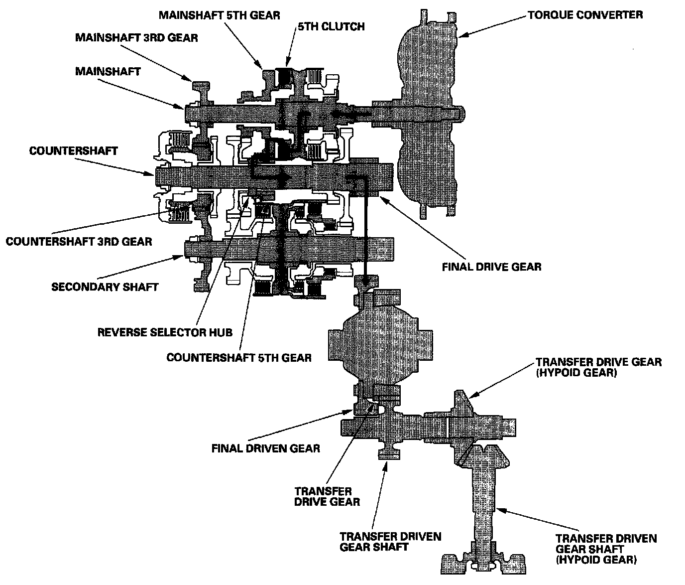 - Power is transmitted to the final drive gear, which in turn drives the final driven gear and the transfer drive gear.