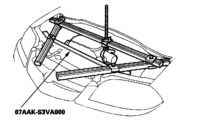31. Lift and support the engine with an engine hanger, T/N AAR-T-12566, and support bar, T/N 07AAK-S3VA000, or equivalent. (The engine hanger and support bar are available through the American Honda Tool and Equipment Program.)