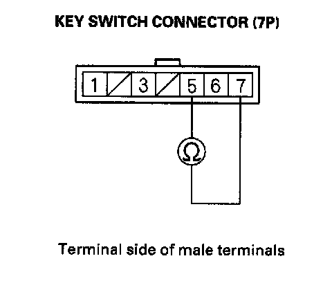 3. Check for continuity between the No. 5 and No. 7 terminals when the key is pushed, and check for no continuity when the key is released.