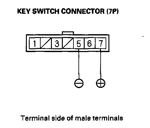 Key Interlock System Circuit Troubleshooting1. Disconnect the key switch connector (7P) from the steering lock assembly.