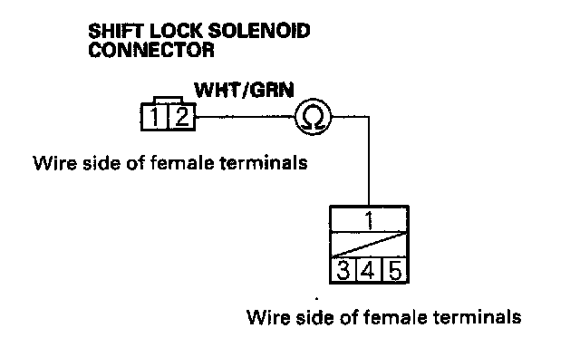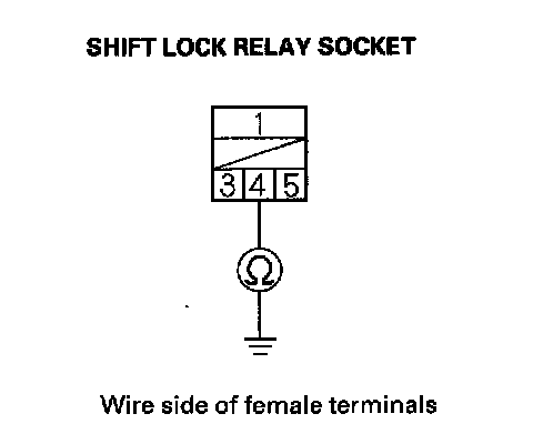 14. Check for continuity between the No. 1 terminal of the shift lock relay socket and the No. 2 terminal of the shift lock solenoid connector.