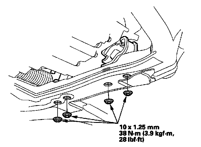 9. Lower the transmission, then install the transmission lower mount nuts.