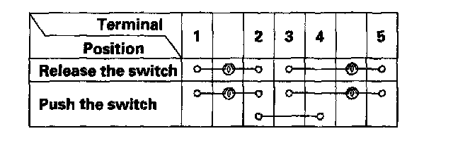 3. Check for continuity between the terminals in each switch position according to the table. If the switch fails any continuity check, replace the switch.