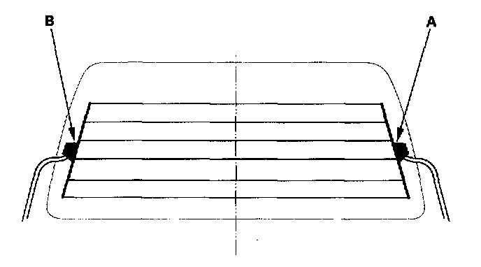 1. Check for voltage between the positive terminal (A) and body ground with the ignition switch and defogger switch ON.