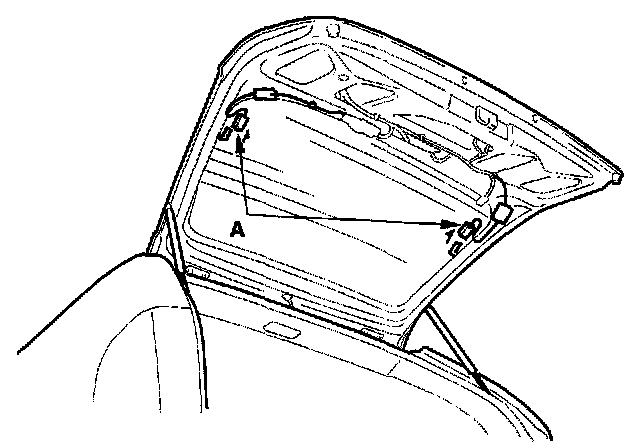 2. Disconnect the rear window defogger connectors (A).
