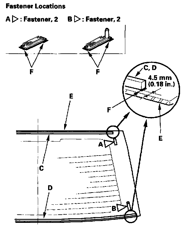 - Be sure the fasteners and rubber dams line up with alignment marks (F).