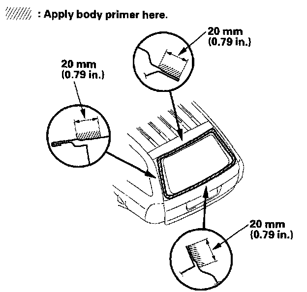 - Never touch the primed surfaces with your hands. If you do, the adhesive may not bond to the rear window properly, causing a leak after the rear window is installed.