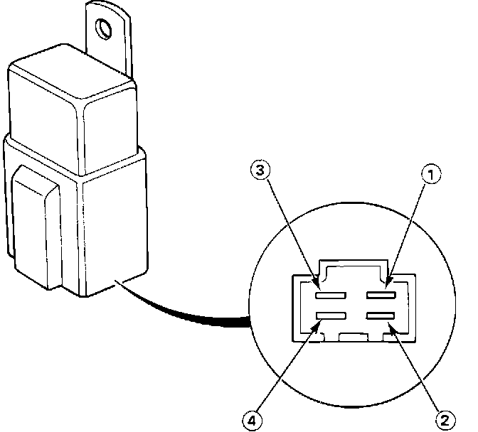 NOTE: Same type of relay is used for compressor clutch, condenser fan, and radiator cooling fan.
