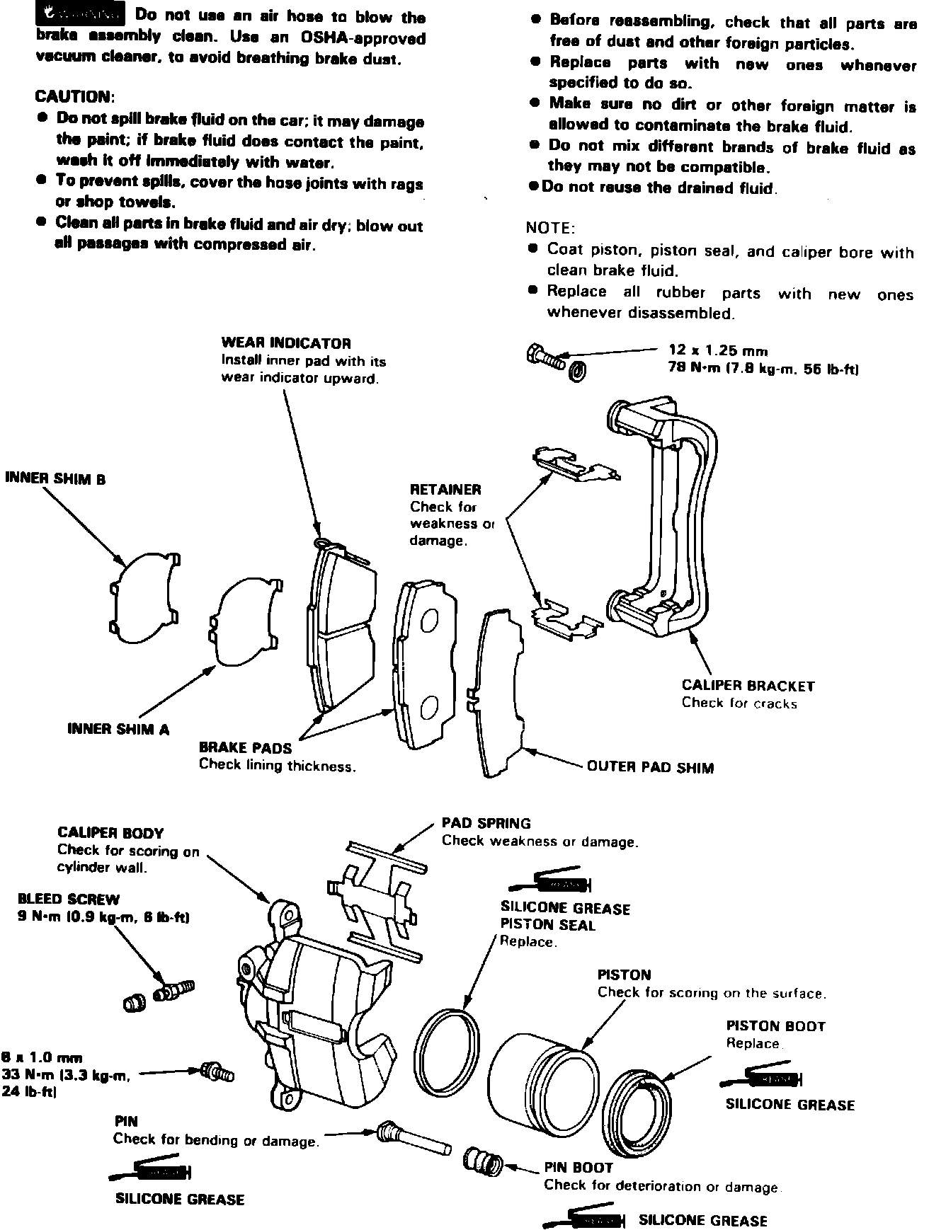 1. Clean caliper bore and piston with brake fluid and inspect for excessive wear or damage.