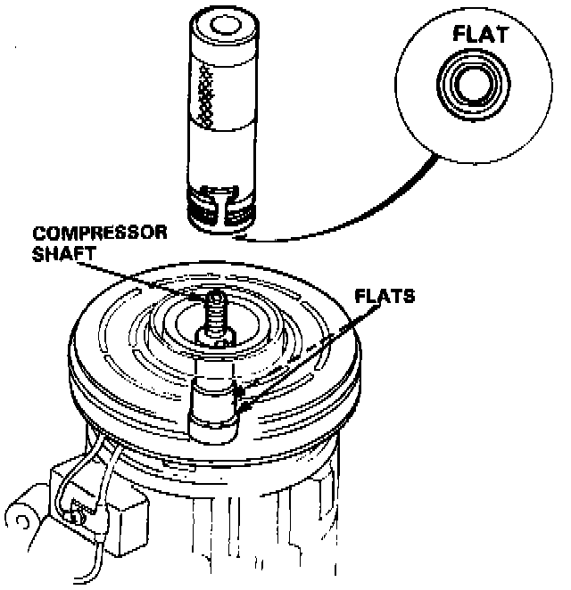 4. Install the shaft seal onto the compressor shaft aligning the seal case flats with the shaft flats.