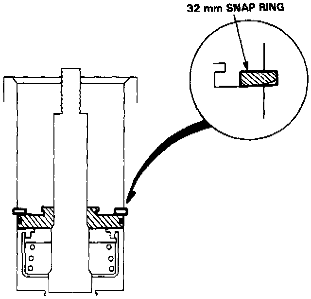 12. Install the 32 mm snap ring with its chamfered edge inside.
