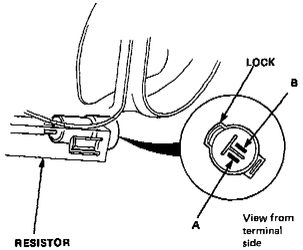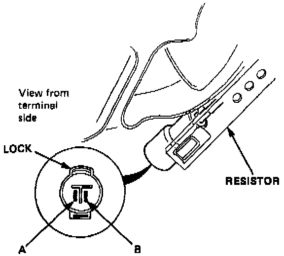 2. Using an ohmmeter, measure resistance between the A and B terminals. Replace the resistor if the resistance is not within specifications.