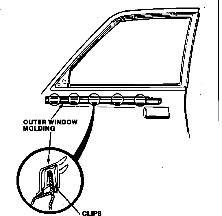 4. Using a long flat-blade screwdriver, remove the outer window molding by prying up at the rear edge of the door.