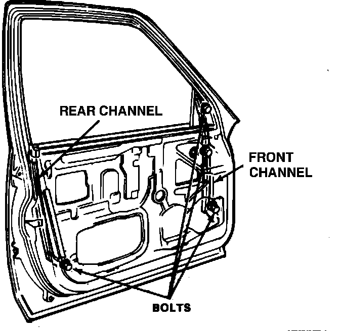 6. Lower the window and loosen the four bolts holding the front and rear channels.