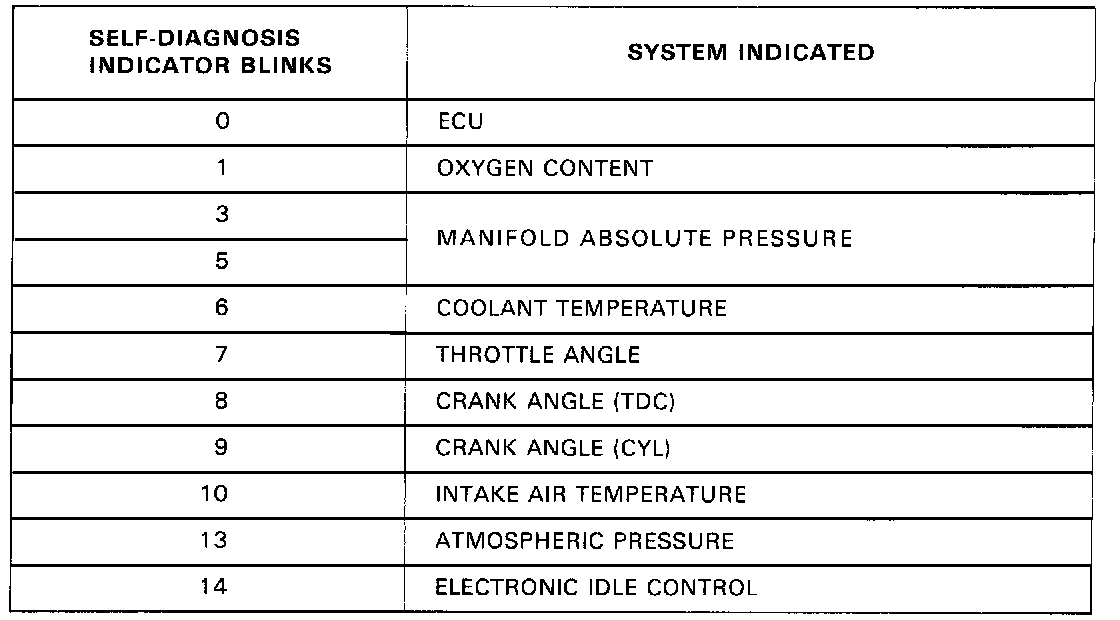 If LED indicates CODE 2, 4, 11 , or exceeds 14, count the number of blinks again. If the indicator is in fact, blinking these codes, substitute a known-good ECU and re-check. If the indication goes away, replace the original ECU.