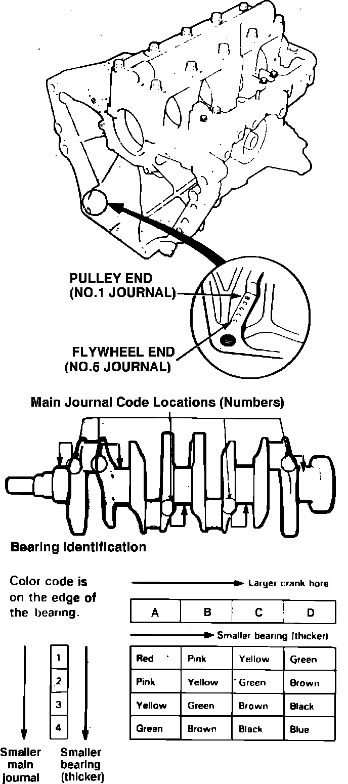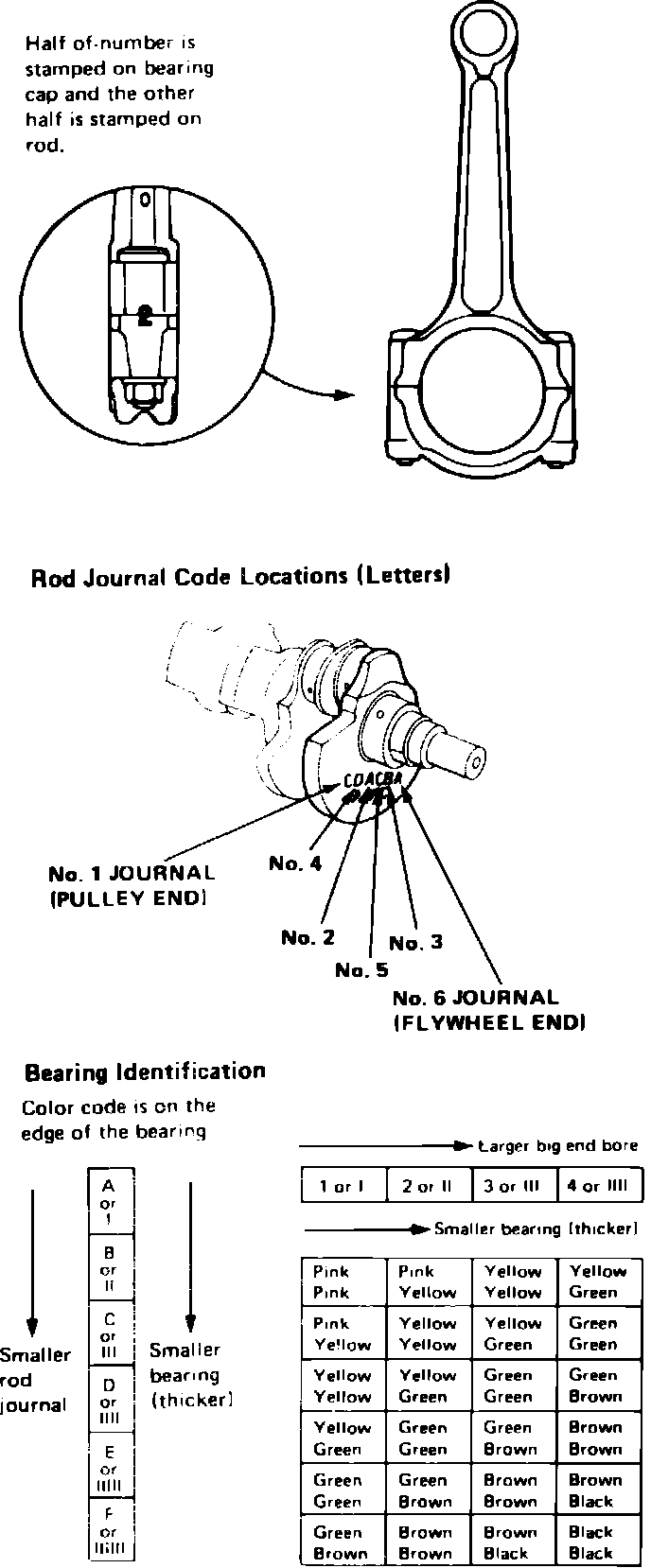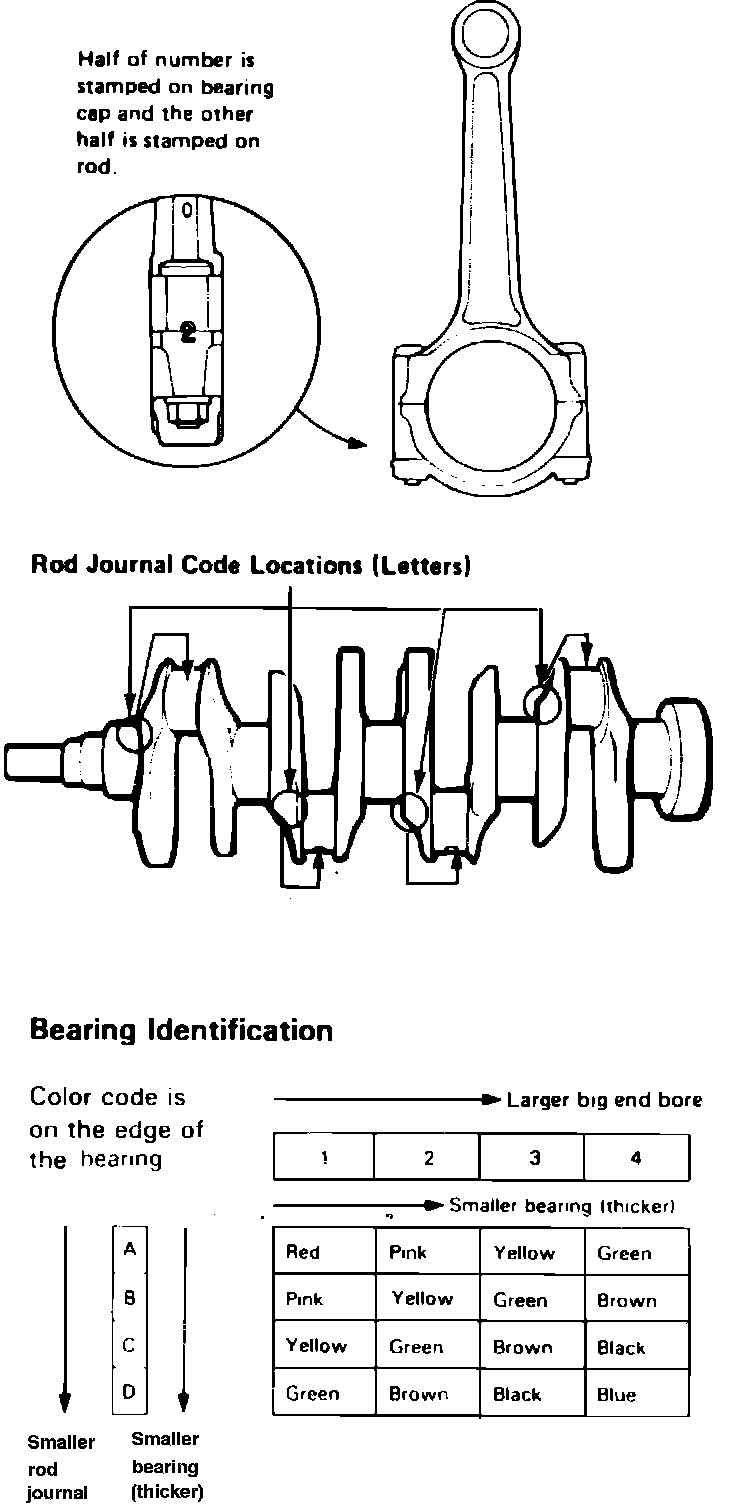 Fig. 34 Connecting rod bearing identification. Legend: