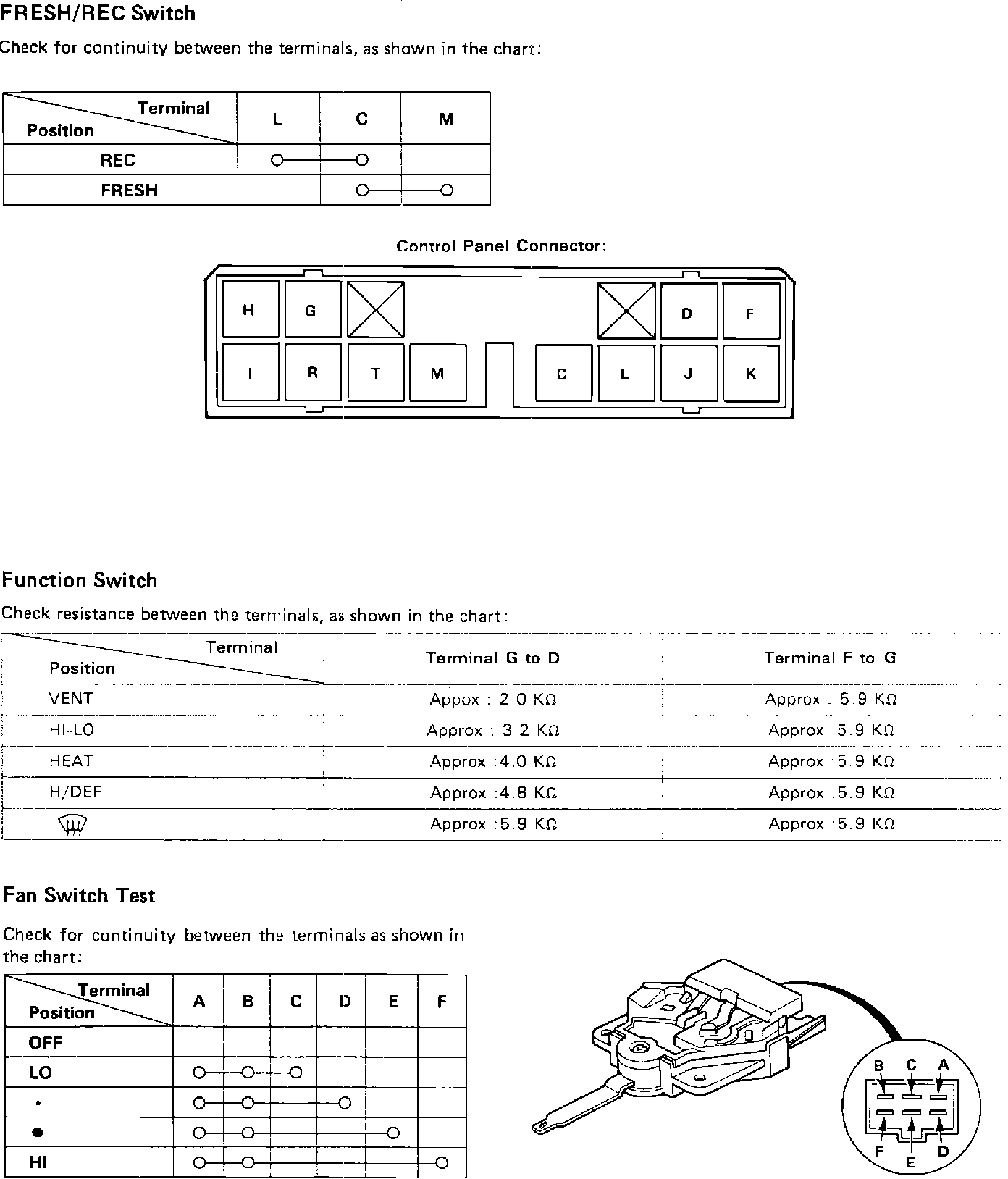 Function Control Panel and Fan Switch