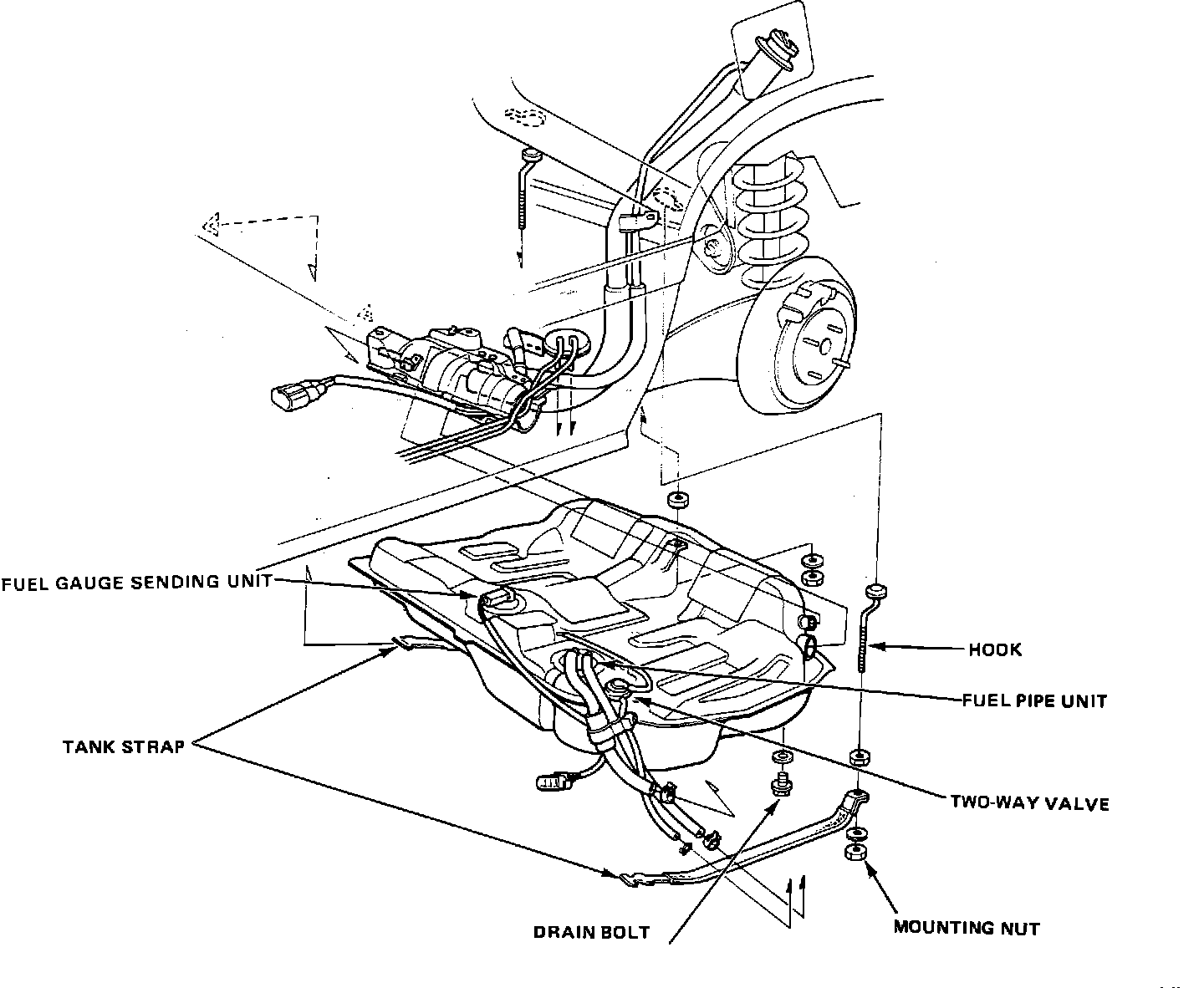 NOTE: The tank may stick on the undercoating that is applied to it's mount. To remove, carefully pry it off the mount.