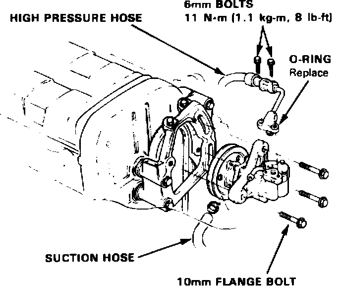 1. Disconnect and cap hoses from power steering pump reservoir.