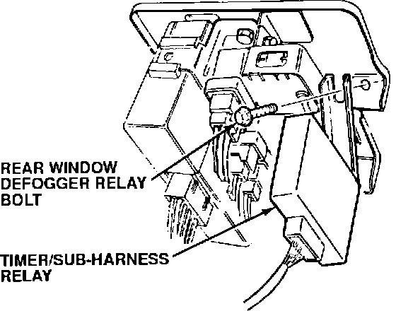 NOTE: Attach the timer/sub-harness bracket to the rear window defogger relay bolt, not the relay bracket bolt.