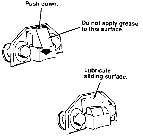 3. Push the rubber pad on each tailgate side cushion downward and apply a coating of multipurpose grease to the plate. Do not apply any grease to the part of the cushion that contacts the tailgate.