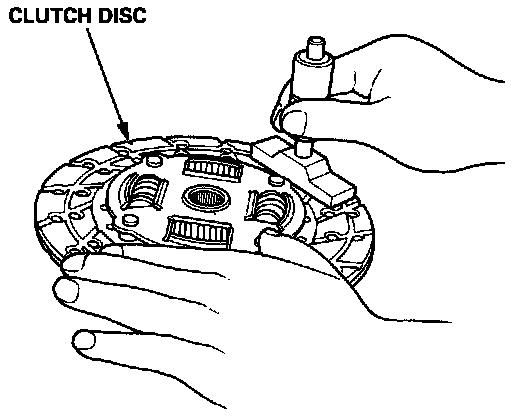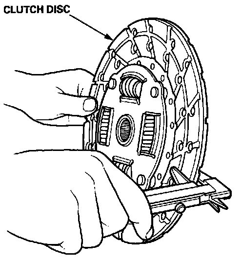 1. Inspect the lining of the clutch disc for signs of slippage and oil. If the clutch disc is burned black or oil soaked, replace it.