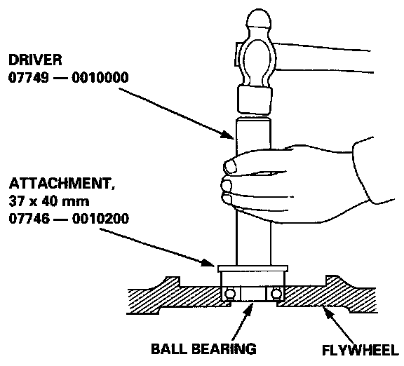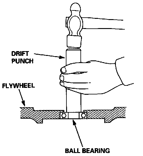 4. Drive the new ball bearing into the flywheel using the special tools as shown.