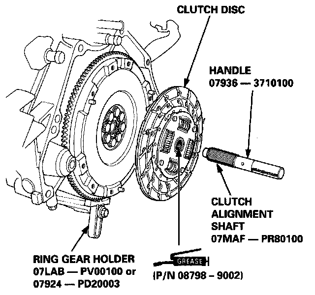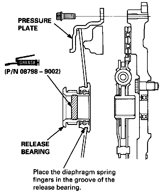 NOTE: After installing the pressure plate, make sure the release bearing does not come off.