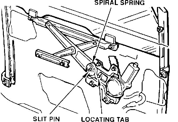 ^ Move the window regulator arm to its lowest position to reduce the spiral spring tension.