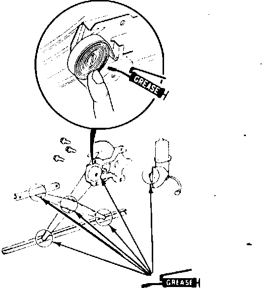 3. Lubricate the plastic slides with White Lithium Grease (P/N 08732-0005). Apply multipurpose moly grease to the spiral spring as shown.