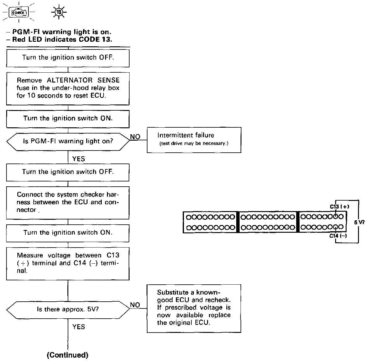 Self-diagnosis Red LED indicator blinks thirteen times: A problem in the Atmospheric Pressure (PA) Sensor circuit.