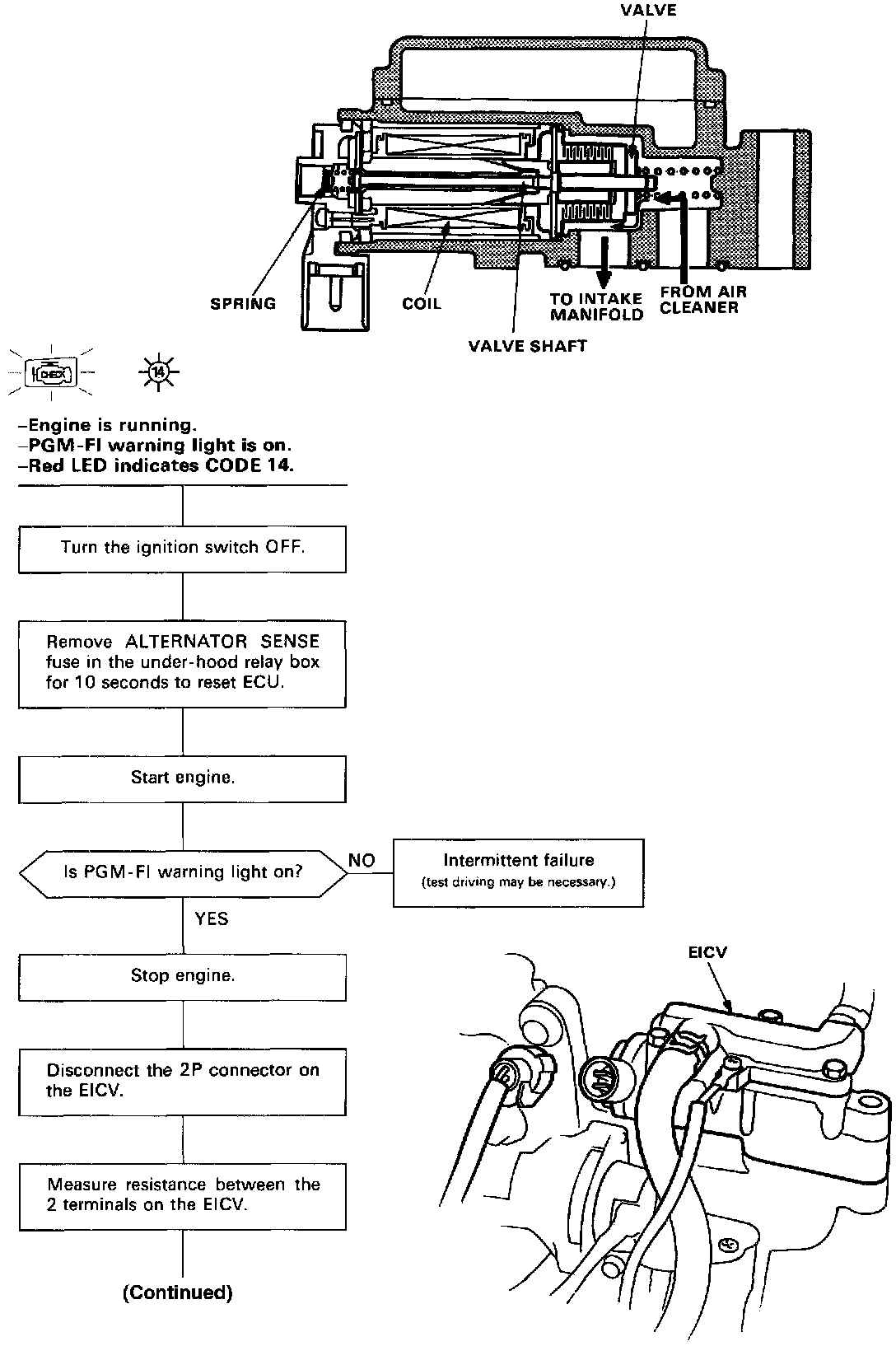 Self-diagnosis Red LED indicator blinks fourteen times: A problem in the Electronic Idle Control Valve (EICV) circuit.