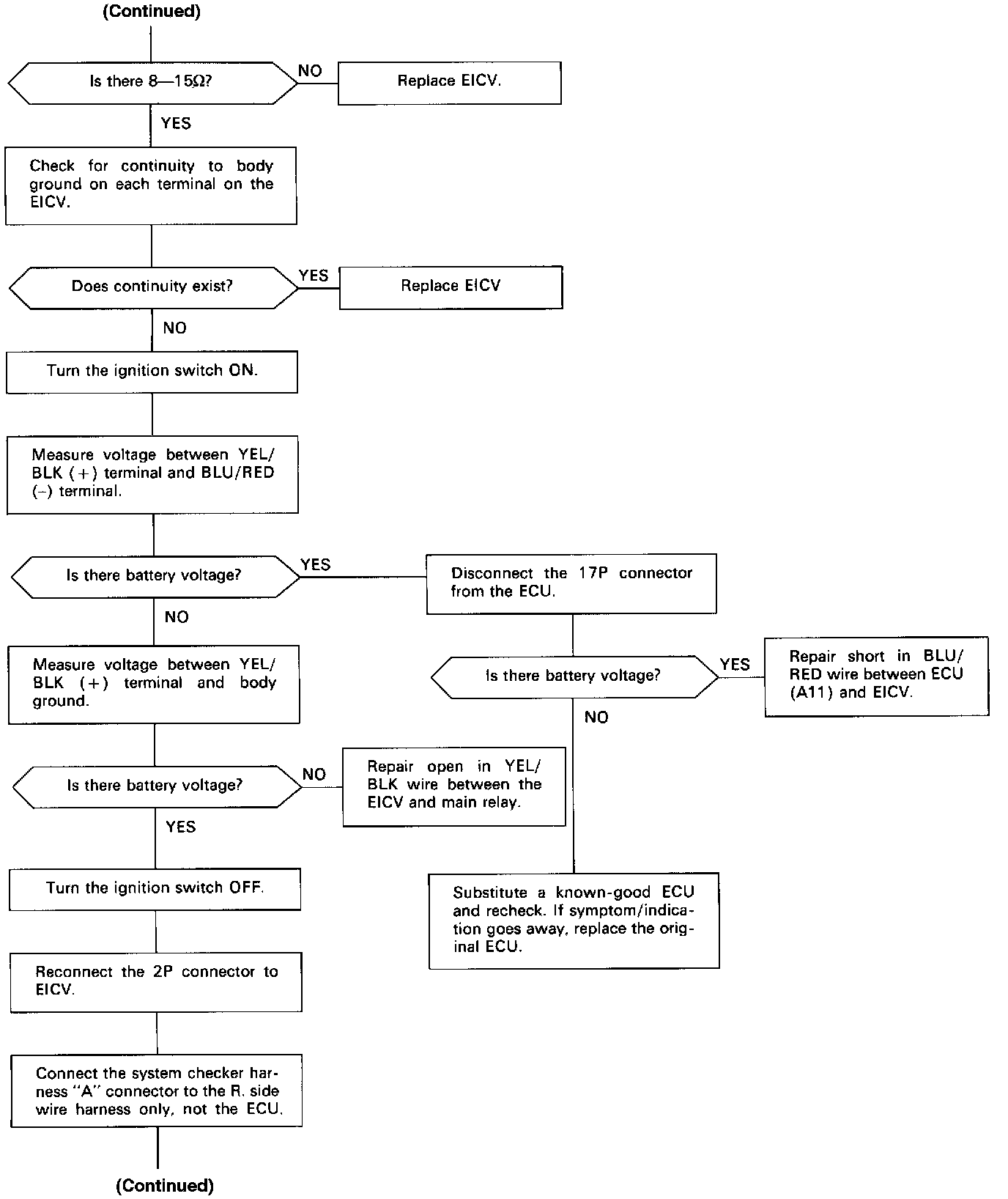 The EICV changes the amount of air bypassing the throttle body in response to a current signal from the ECU in order to maintain the proper idle speed.