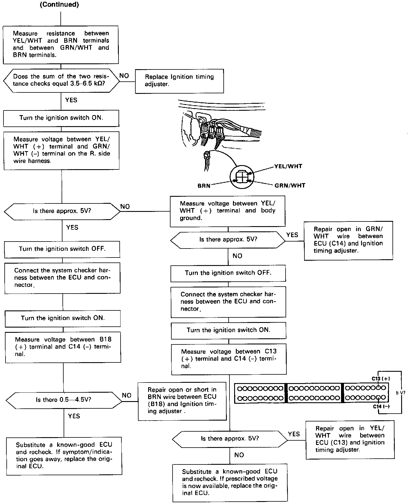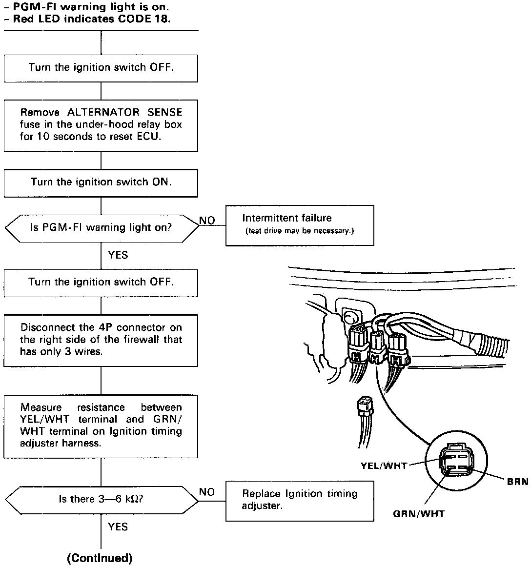 Self-diagnosis Red LED indicator blinks eighteen times: A problem in the Ignition Timing Adjuster Circuit.