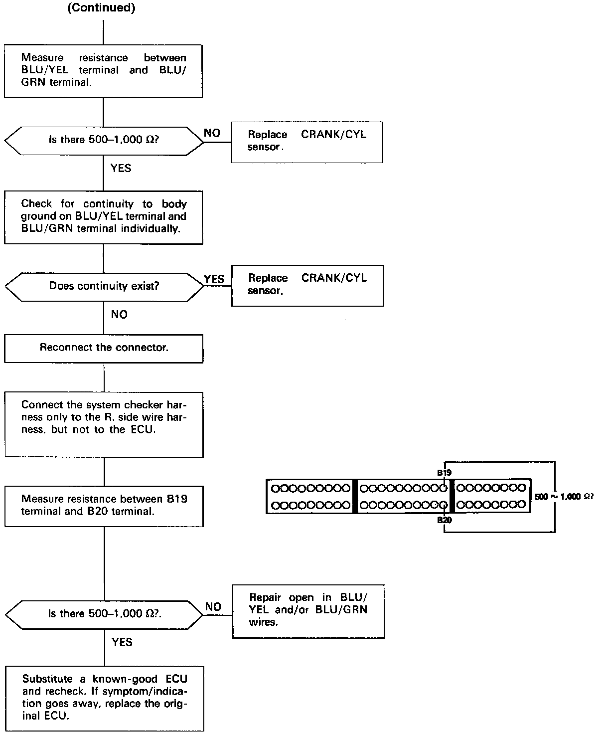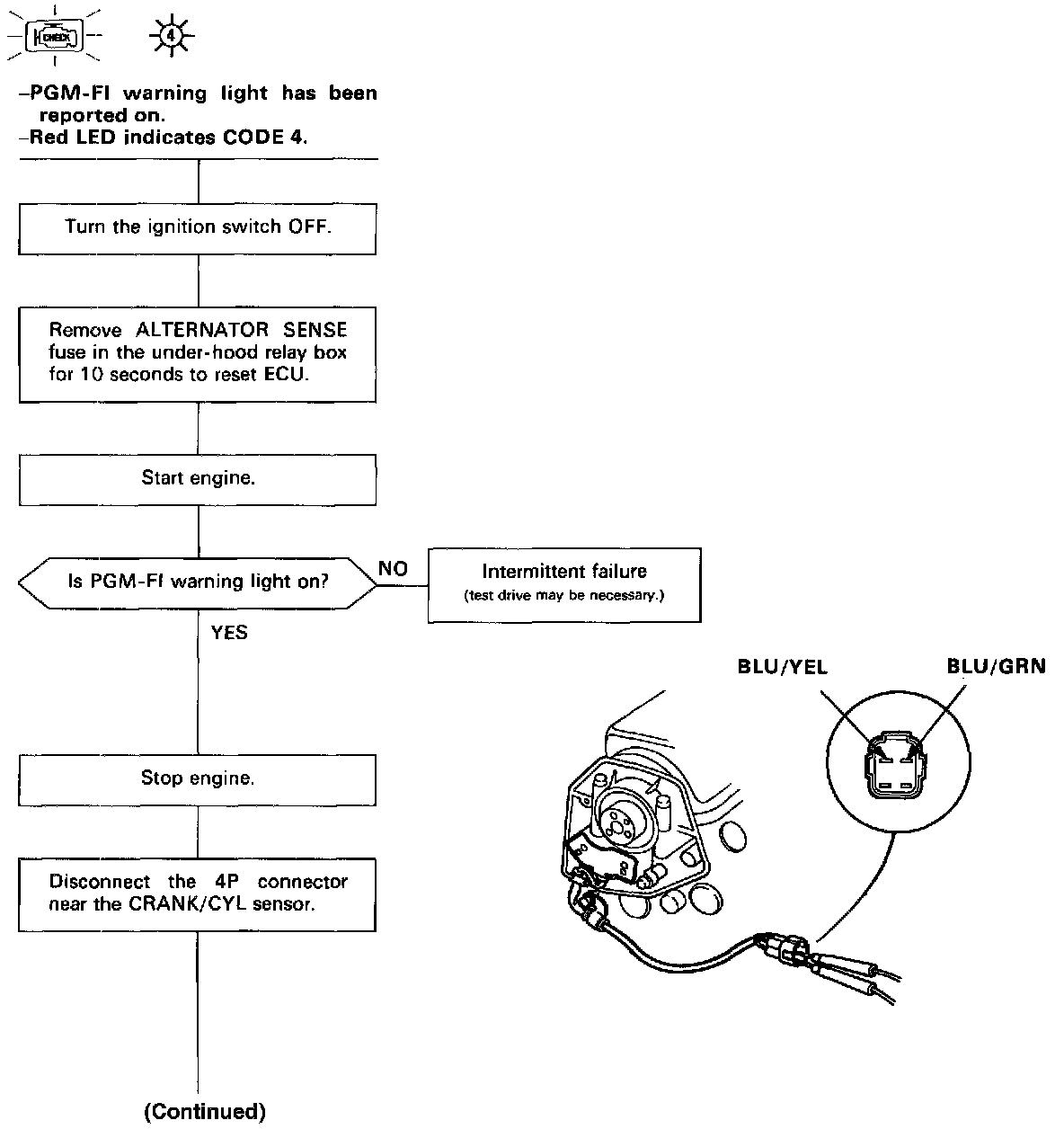 COUPE ONLYSelf-diagnosis Red LED indicator blinks four times: A problem in the CRANK Circuit of the CRANK/CYL Sensor.