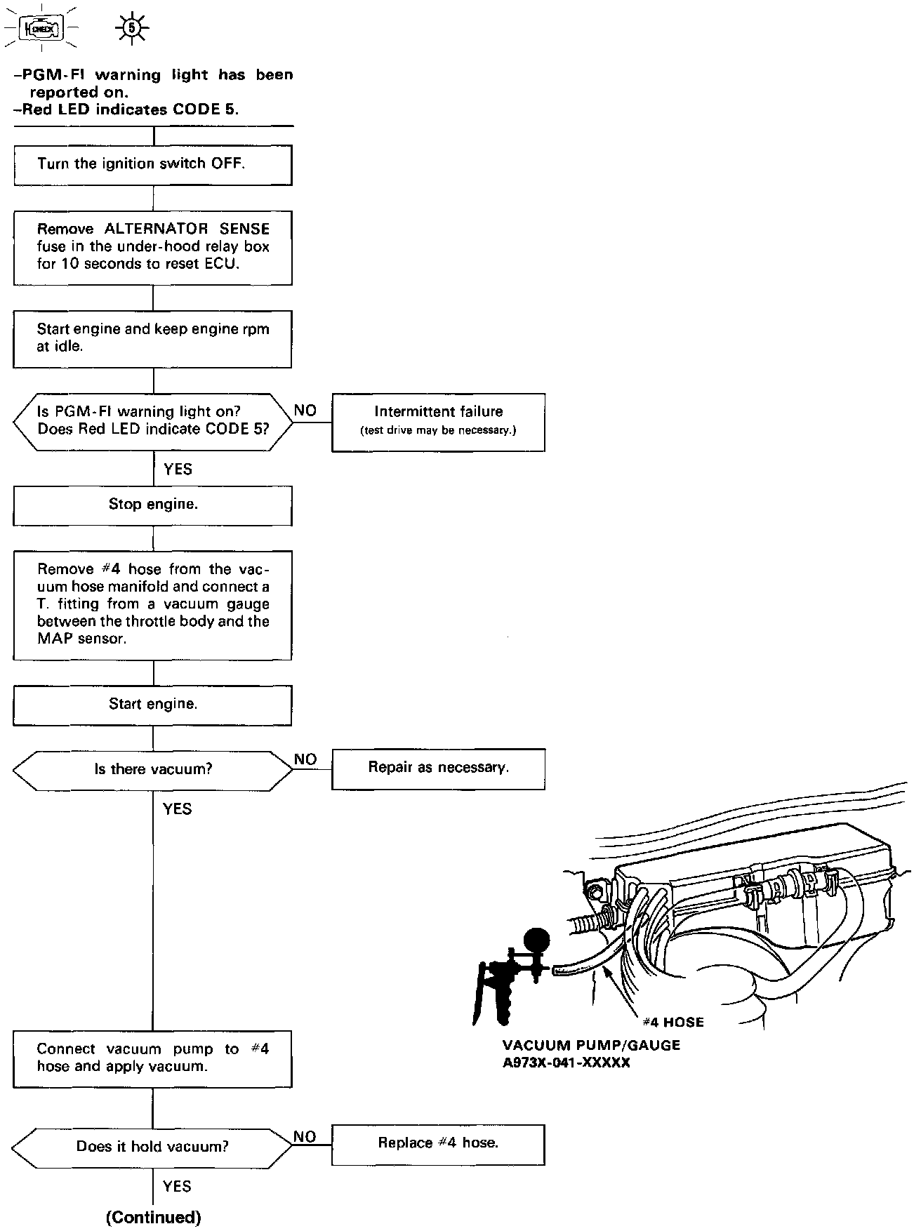 Self-diagnosis Red LED indicator blinks five times: Most likely a mechanical problem (broken hose) in the Manifold Absolute Pressure (MAP) Sensor system.