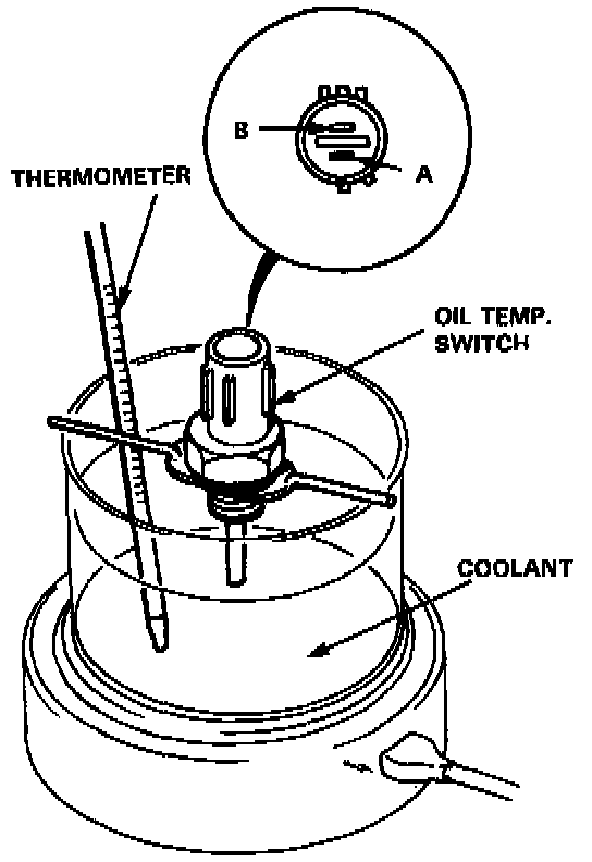 2. Suspend the oil temperature switch in a container of coolant as shown.